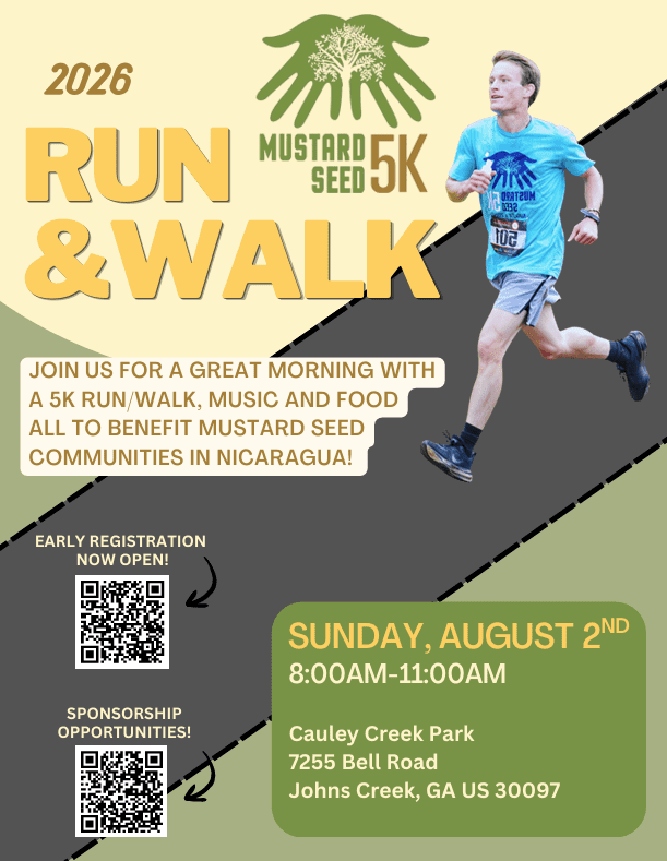 The Mustard Seed 5K in Johns Creek is a great morning run with a 5k, music, and food! The race benefits the Mustard Seed Communities in Nicaragua. Serious and recreational runners, walkers, and strollers are all welcome! This is a USATF-certified course & and an AJC Peachtree Qualifier. Proceeds go to support the Saint Brigid Mustard Seed Ministry, dedicated to supporting the work of Mustard Seed Communities in Nicaragua, which serves abandoned children with disabilities and uplifts marginalized communities. Come out for a great time or to support the cause. A virtual option is available too!
